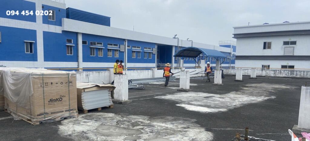 4️⃣ Lắp đặt tấm pin Jinko Solar – kết nối inverter Growatt.